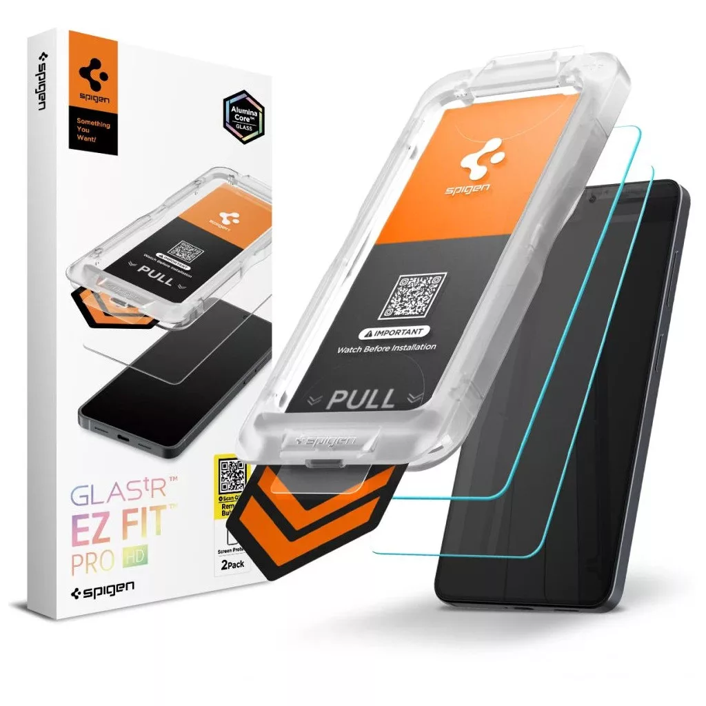 A Spigen Glas.tR EZ Fit Pro HD edzett üvegfólia a Samsung Galaxy S26 képernyőjének legmagasabb szintű védelmét nyújtja. Az új AluminaCore technológiával készült 10H+ keménységű rétegszerkezet egyszerre biztosít karc- és ütésállóságot, miközben megőrzi a kijelző tökéletes átláthatóságát és érintésérzékenységét. Az EZ Fit Pro telepítőkeretnek köszönhetően a felhelyezés pillanatok alatt, buborékmentesen, precízen történik – kompromisszumok nélkül.